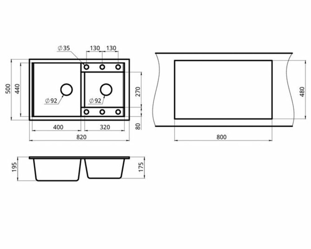 Мойка GRANULA GR-8201 чёрный 820х500мм
