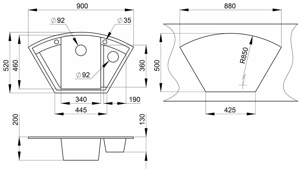 Габариты мойки 900?520