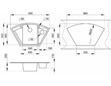 Размер чаши 340х460, 190х360
