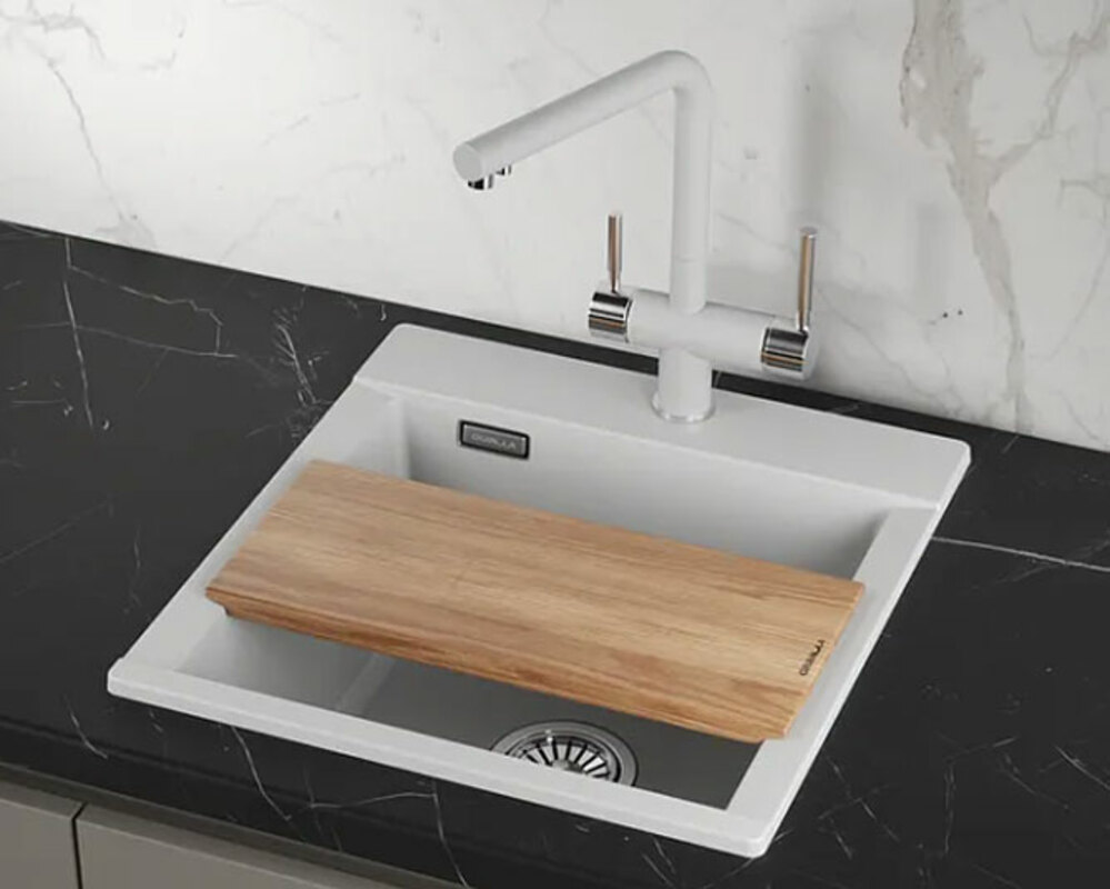 Изготовленная из прочного и долговечного кварца, эта мойка гарантирует долгий срок службы и простоту в уходе.