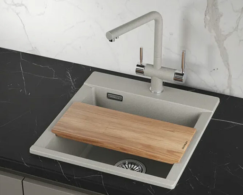 Изготовленная из прочного и долговечного кварца, эта мойка гарантирует долгий срок службы и простоту в уходе.