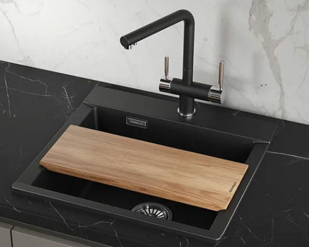 Изготовленная из прочного кварцевого материала, мойка будет служить вам многие годы.