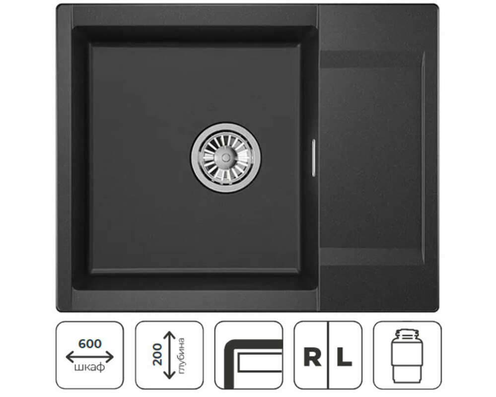 Кухонная мойка GRANULA ES-6202 чёрный 620х500мм