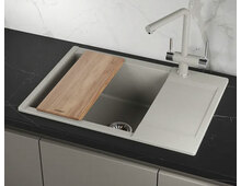 Эта кухонная мойка изготовлена из высококачественного кварца, который известен своей прочностью и устойчивостью