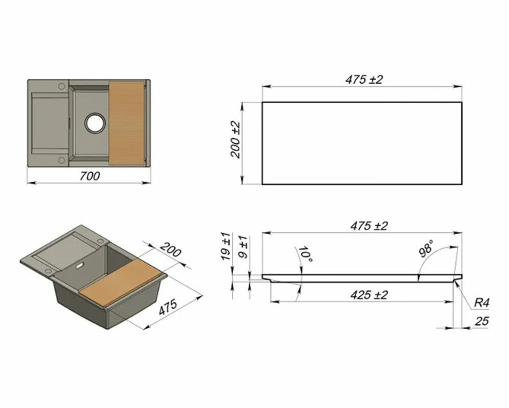 Эта кухонная мойка изготовлена из высококачественного кварца, который известен своей прочностью и устойчивостью