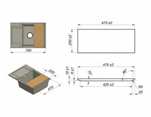 Кухонная мойка GRANULA ES-7003 шварц 700х500мм