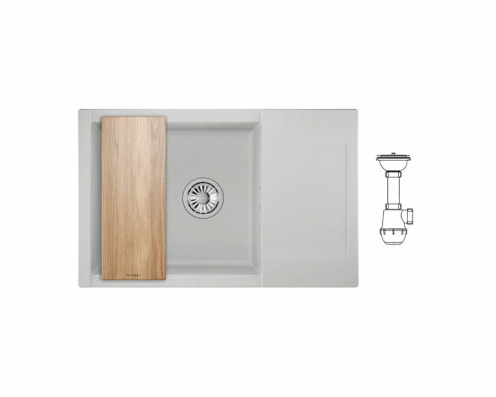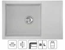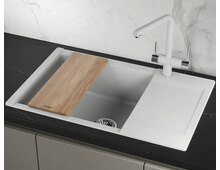 Прямоугольная форма мойки дополнена крылом для дополнительного удобства в использовании.