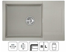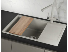 Прямоугольная форма мойки дополнена крылом для дополнительного удобства в использовании.