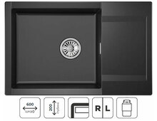 Прямоугольная форма мойки дополнена крылом для дополнительного удобства в использовании.