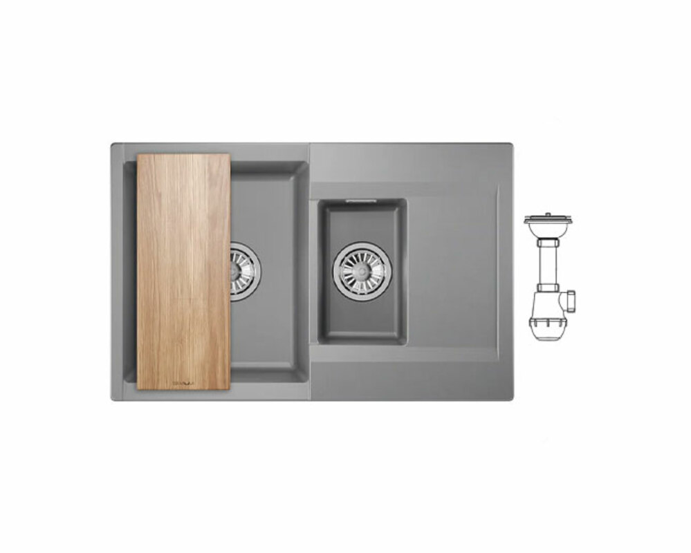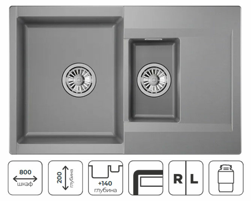 Эта двойная мойка оснащена двумя чашами различного размера, что обеспечивает максимальное удобство при