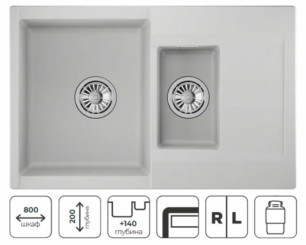 Эта двойная мойка оснащена двумя чашами различного размера, что обеспечивает максимальное удобство при