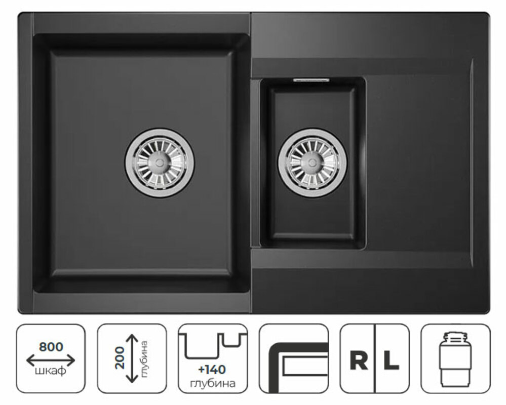 Кухонная мойка GRANULA ES-7808 шварц 780х500мм