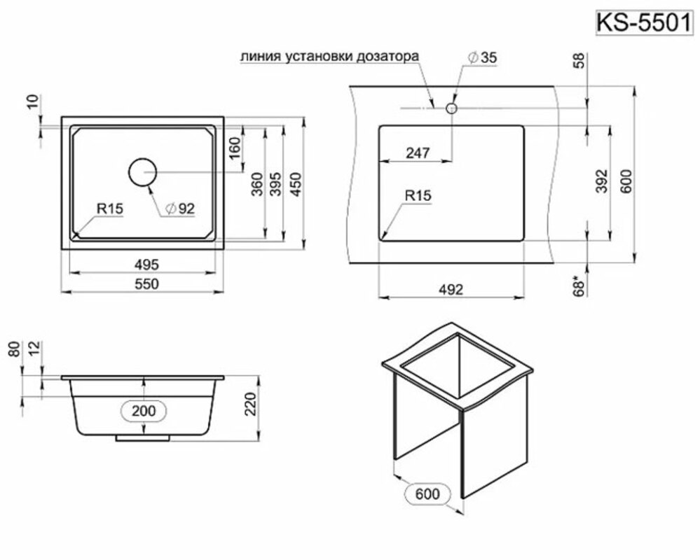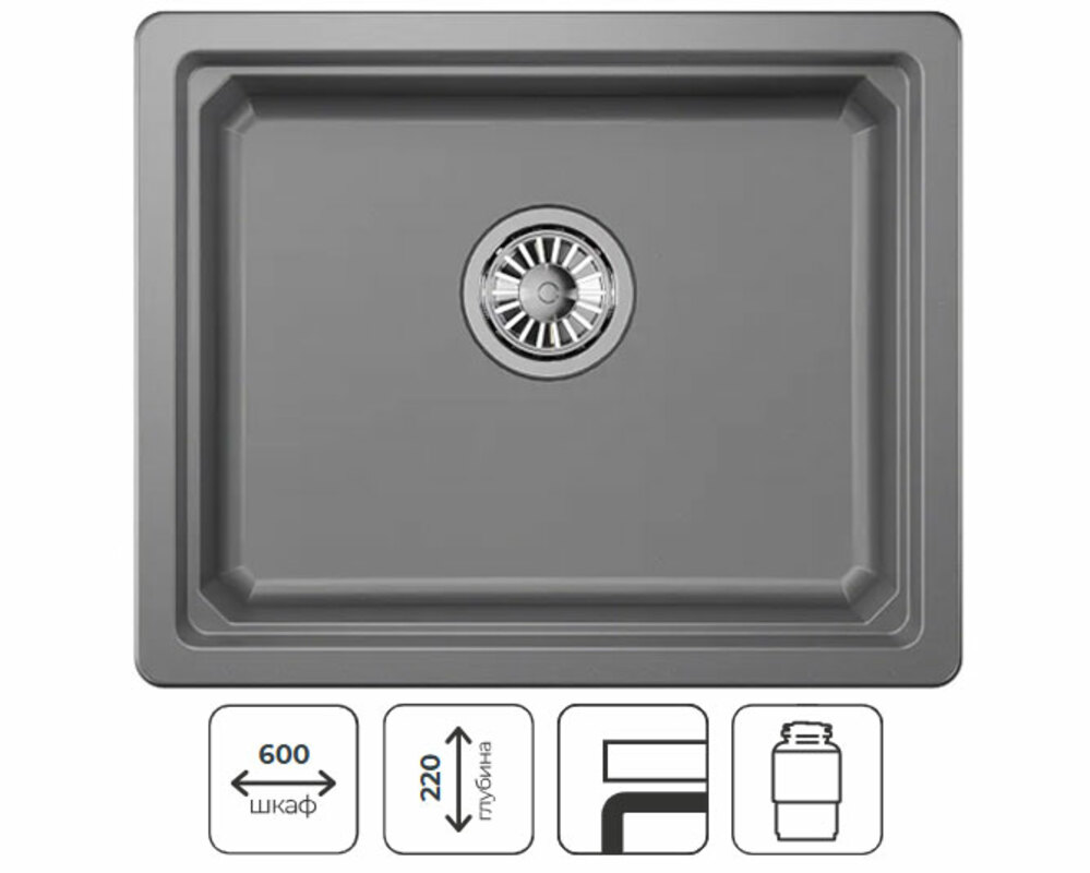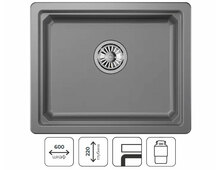 Односекционная кухонная мойка прямоугольной формы 550х450 мм для установки под столешницу в шкаф 600мм.