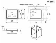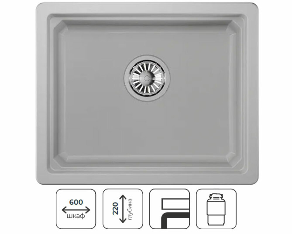 Односекционная кухонная мойка прямоугольной формы 550х450 мм для установки под столешницу в шкаф 600мм.