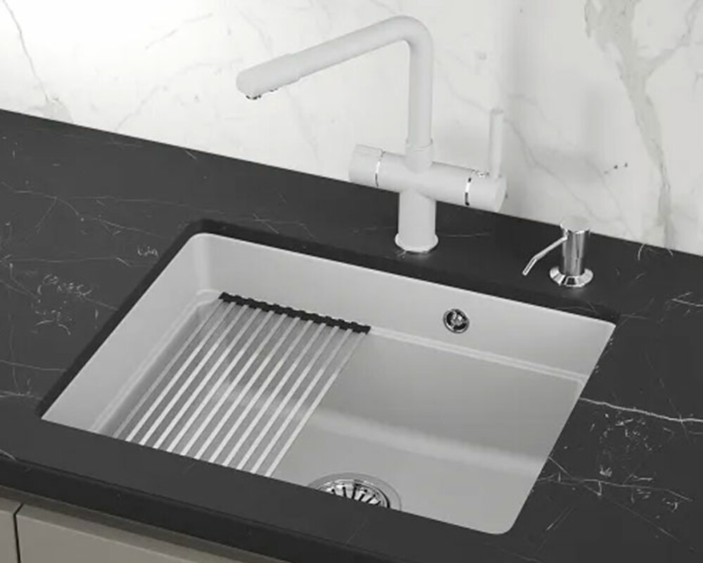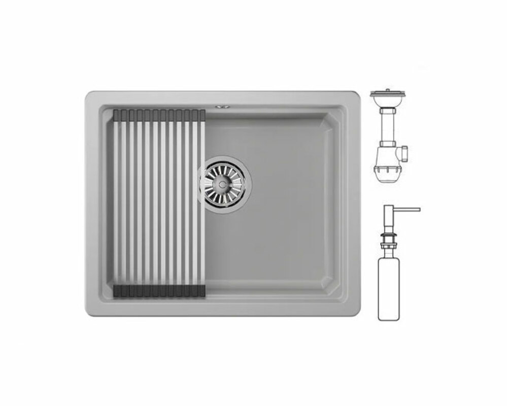 Комплектация Сифон, комплект креплений, дозатор для жидкого мыла (нерж) и ролл-мат