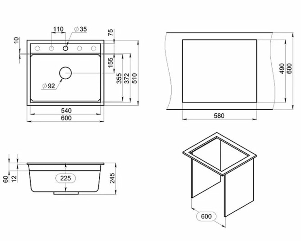 Мойка GRANULA KS-6003 арктик 600х510мм.