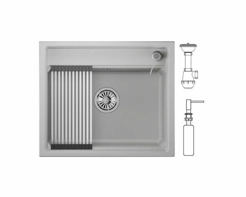 Комплектация Сифон с отводом для бытовой техники, дозатор для жидкого мыла (нерж) и ролл-мат