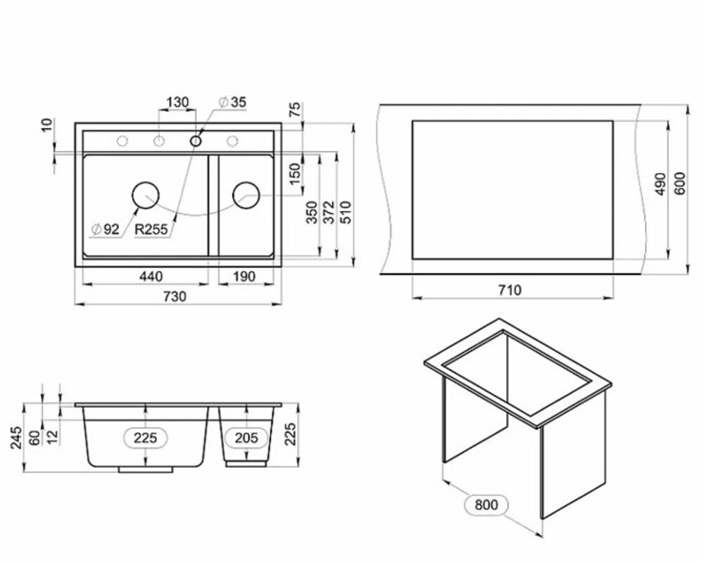Мойка GRANULA KS-7302 чёрный 730х510мм