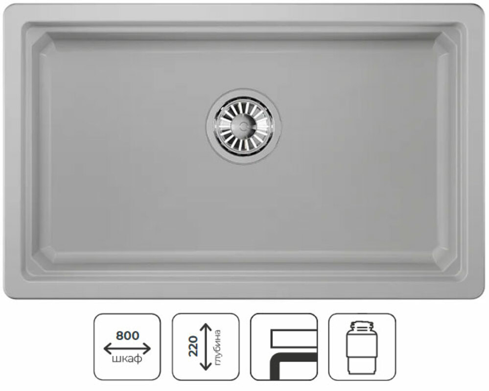 Односекционная кухонная мойка вытянутой прямоугольной формы 730х450 мм для установки под столешницу в шкаф 800 мм.