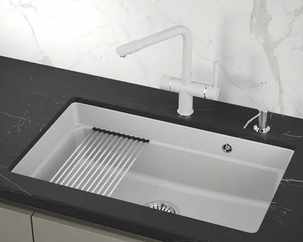 Такая форма поможет легко справиться с большим объемом посуды, а установка под столешницу позволит идеально вписаться в любой современный интерьер.
