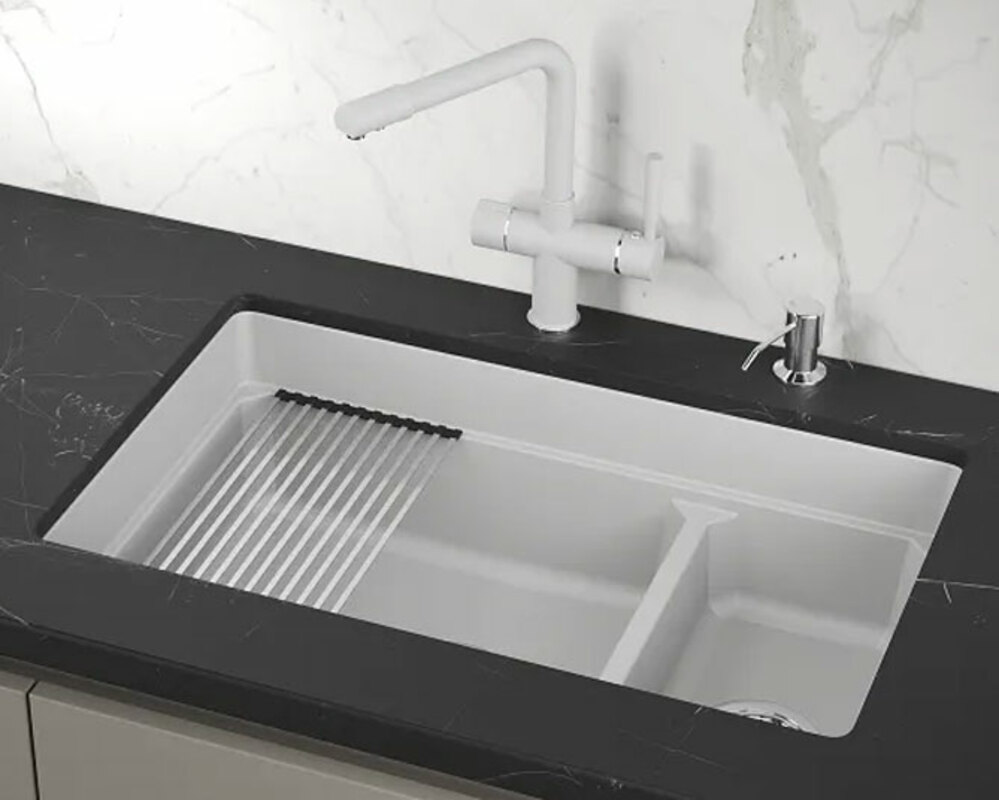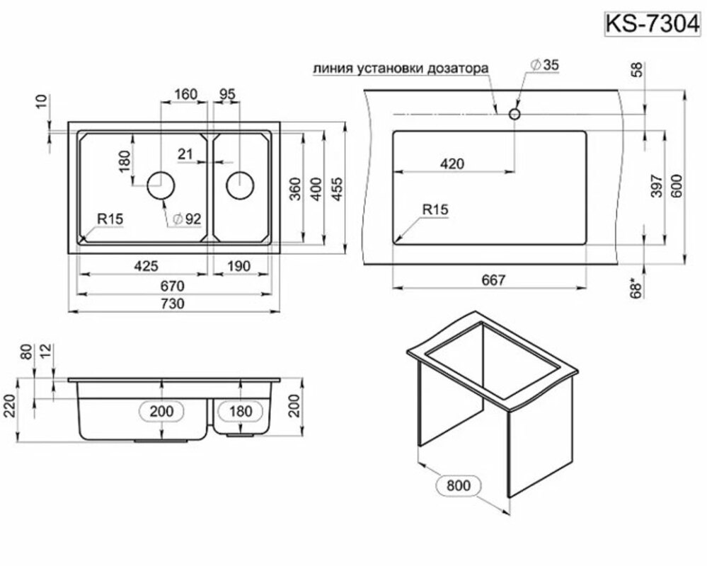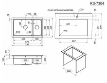 GRANULA Kitchen Space KS-7304U - превосходная кварцевая мойка для кухни. Подстольный монтаж и прямоугольная форма мойки обеспечивают максимальный комфорт и удобство при использовании. Кроме того, комплект из сифона, креплений, дозатора и ролл-мата из нержавеющей стали делают эту модель еще более привлекательной.