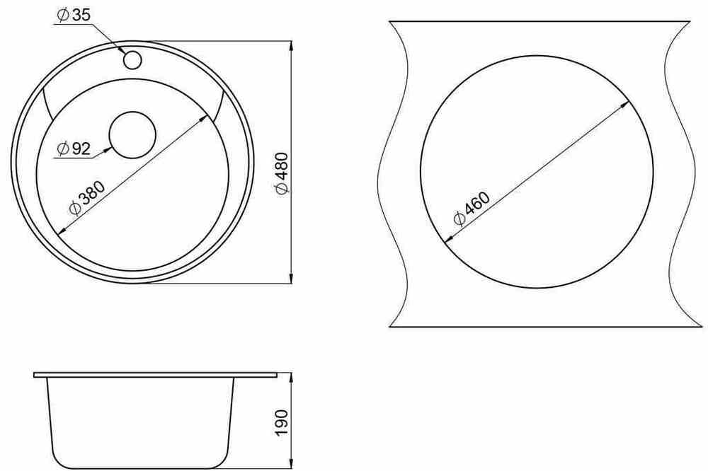 Габариты мойки D480 мм