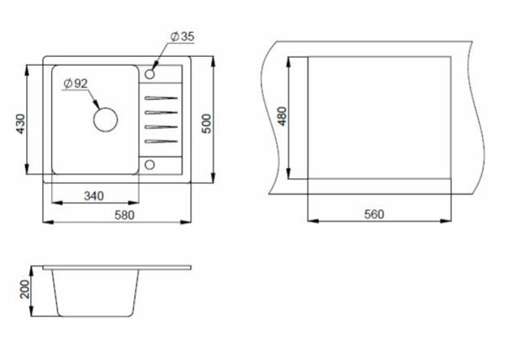 Габариты мойки 580?500 мм