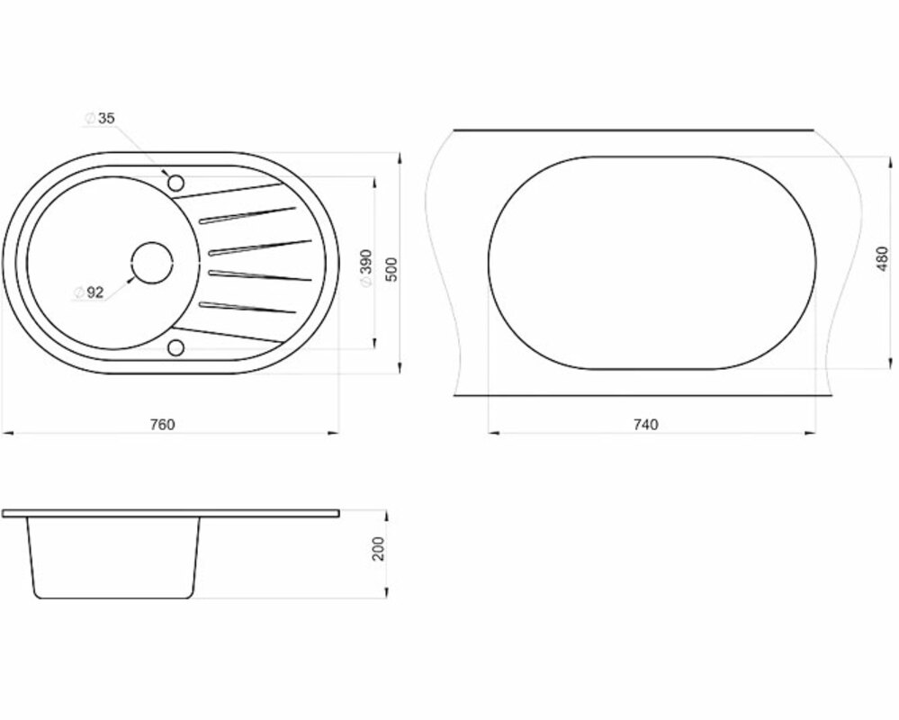 Классическая овальная мойка серии "STANDART" с функциональным дизайном и большим рельефным крылом.
