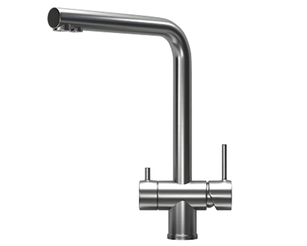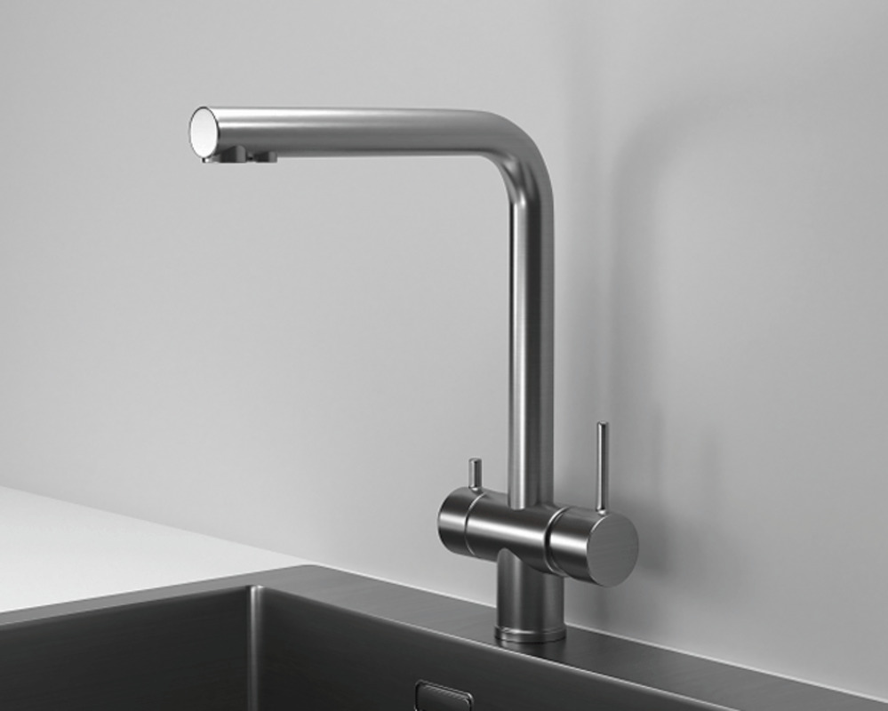 Смеситель имеет двухканальный корпус, что позволяет использовать его как для обычной, так и для фильтрованной воды. Дополнительный изолированный канал для фильтрованной воды обеспечивает ее чистоту и отсутствие примесей в основном потоке.