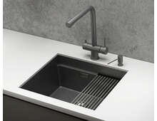 - Дозатор и ролл-мат для удобного хранения моющих средств и губок, что обеспечивает гигиеничность и порядок на кухне;