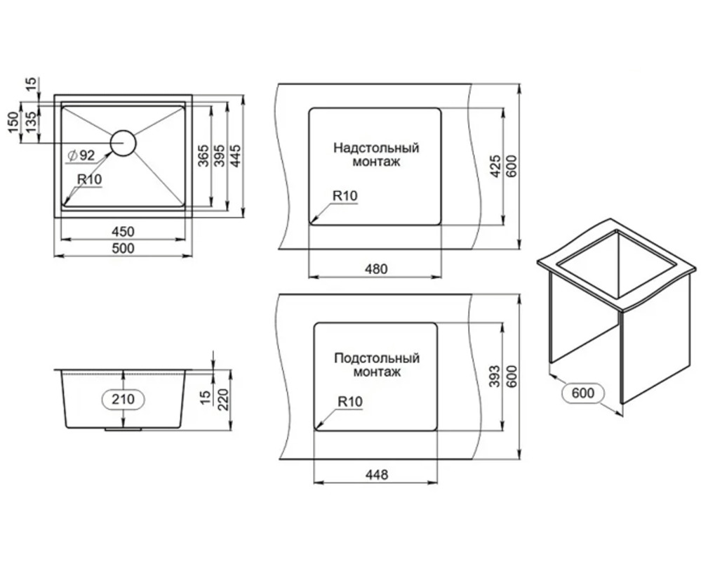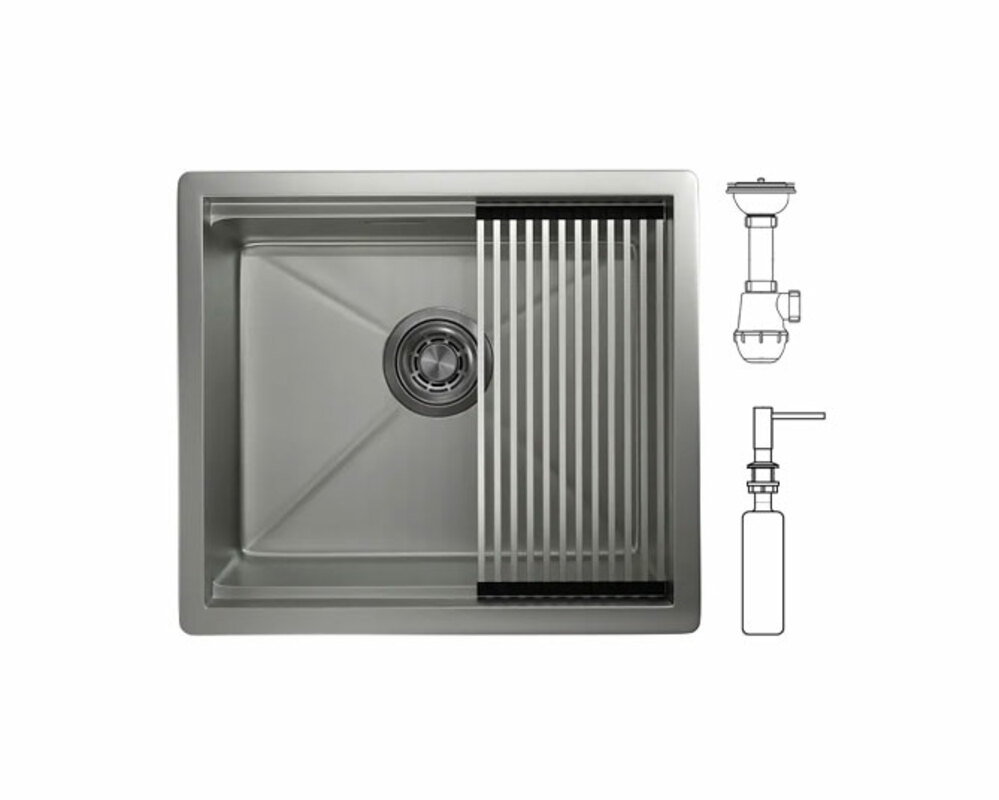 Комплектация: Сифон, комплект креплений, дозатор для жидкого мыла (нерж) и ролл-мат