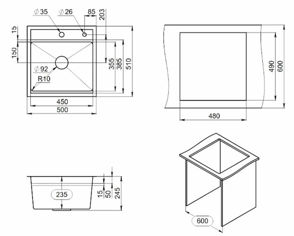 Комплектация: Сифон, комплект креплений, дозатор для жидкого мыла (нерж) и ролл-мат