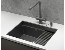 - Дозатор и ролл-мат для удобного хранения моющих средств и губок, что обеспечивает гигиеничность и порядок на кухне;
