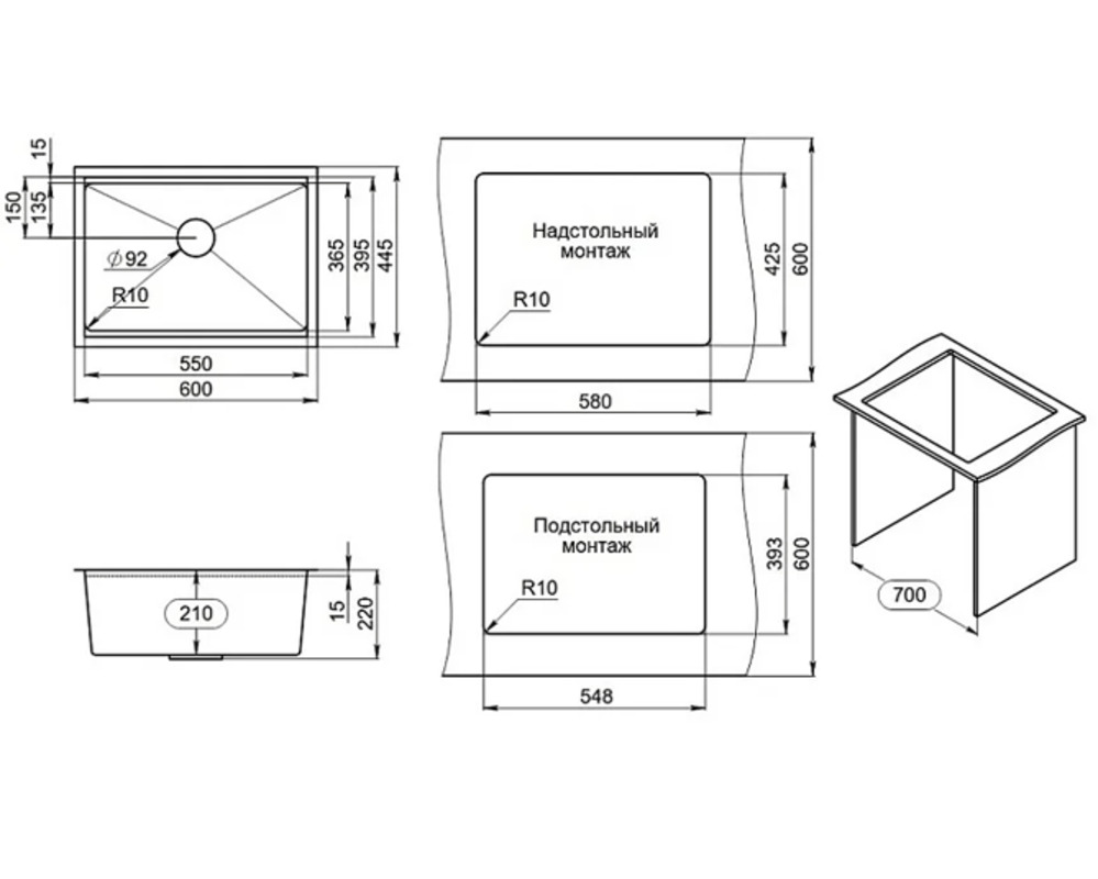 - Современный плоский перелив, предотвращающий переливание воды за пределы мойки;