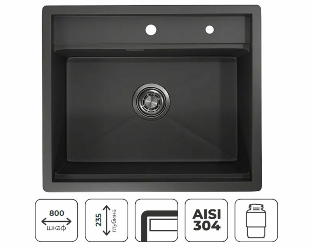 - Готовые отверстия для смесителя и дозатора, которые упрощают процесс установки аксессуаров и позволяют точно их разместить;