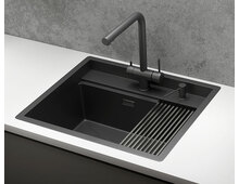- Дозатор и ролл-мат для удобного хранения моющих средств и губок, что обеспечивает гигиеничность и порядок на кухне;
