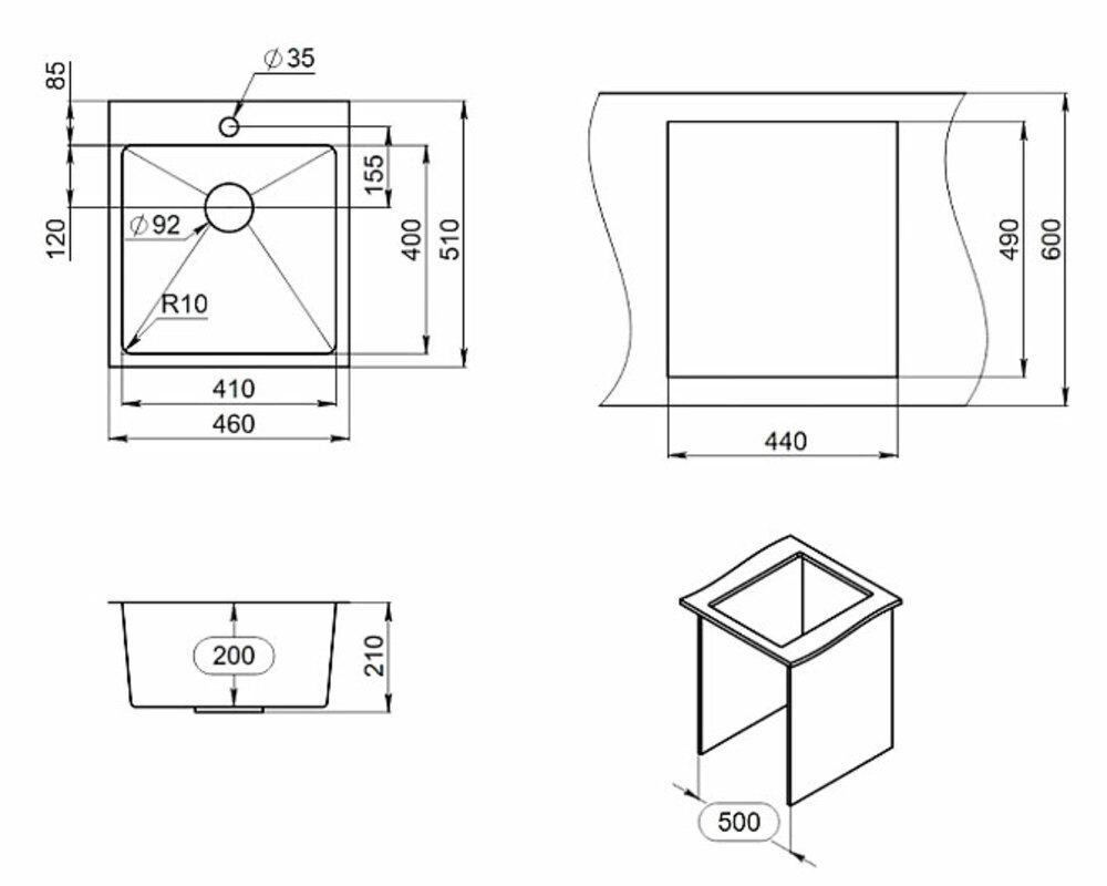 Кухонная мойка Granula GR-4600 ГРАФИТ МАТОВЫЙ 460х510 мм