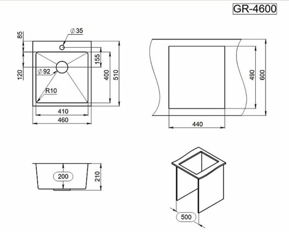 Кухонная мойка Granula GR-4600 СТАЛЬ САТИН 460х510 мм