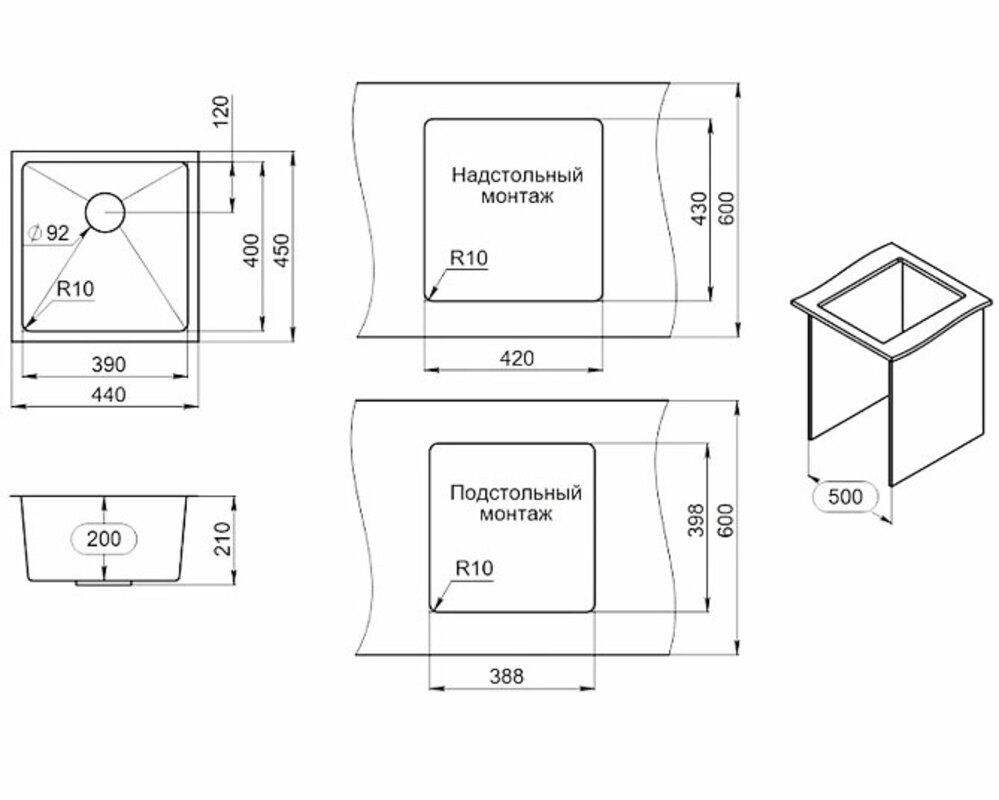 Кухонная мойка Granula GR-4445U СТАЛЬ САТИН 440х450 мм