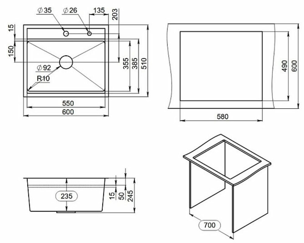 мойка Granula KS-6051 ГРАФИТ МАТОВЫЙ 600х510 мм