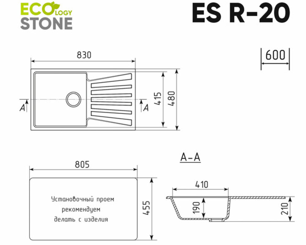 Кухонная мойка Ecology Stone R-20-328 бежевый 830x480мм