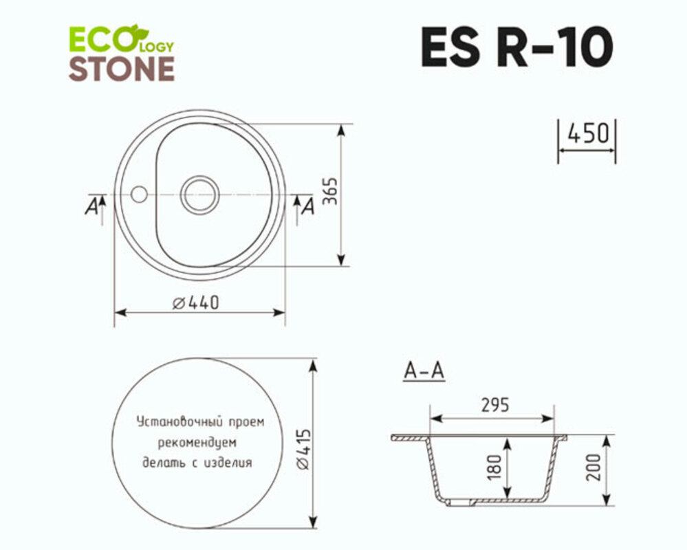 Кухонная мойка Ecology Stone R-10-331 белый d=440мм