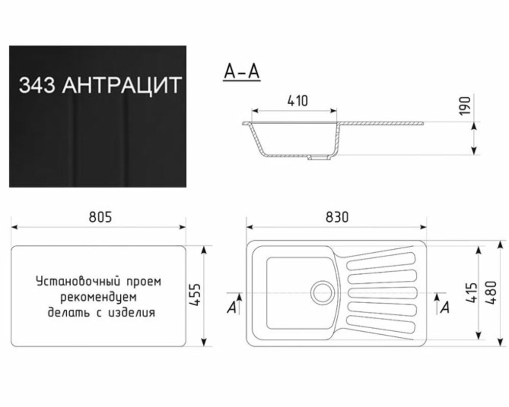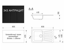 Кухонная мойка Ecology Stone R-20-343 антрацит 830x480мм