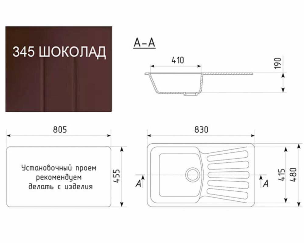 Кухонная мойка Ecology Stone R-20-344 шоколад 830x480мм