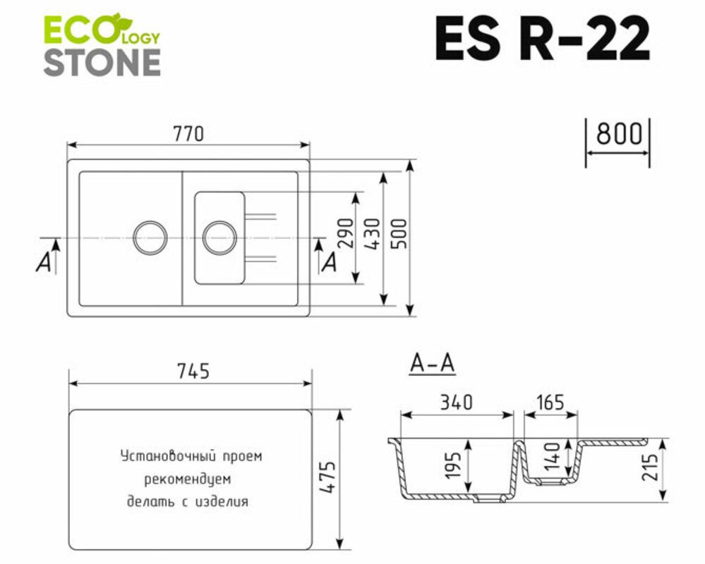 Кухонная мойка Ecology Stone R-22-331 белый 770x495мм