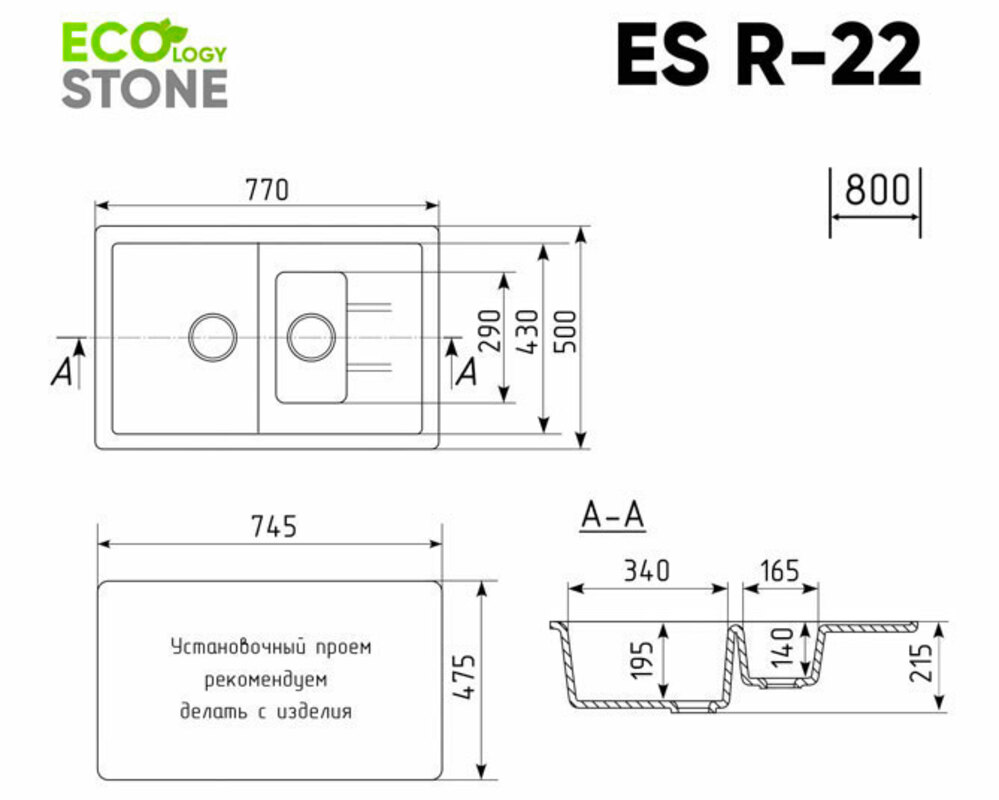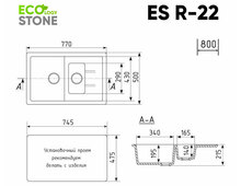 Кухонная мойка Ecology Stone R-22-344 ультра-чёрный 770x495мм