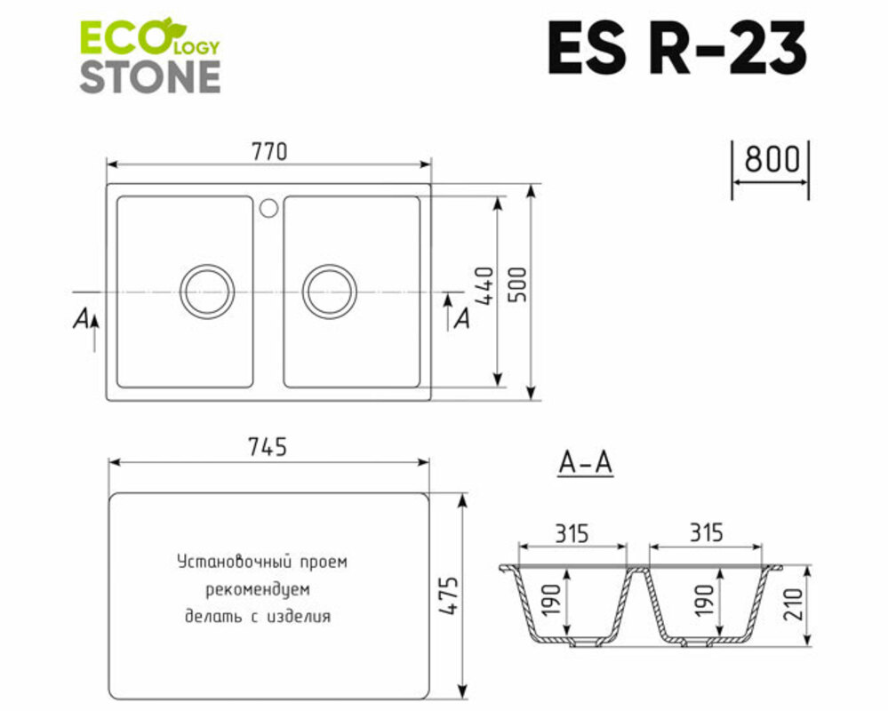 Кухонная мойка Ecology Stone R-23-345 шоколад 775x495мм