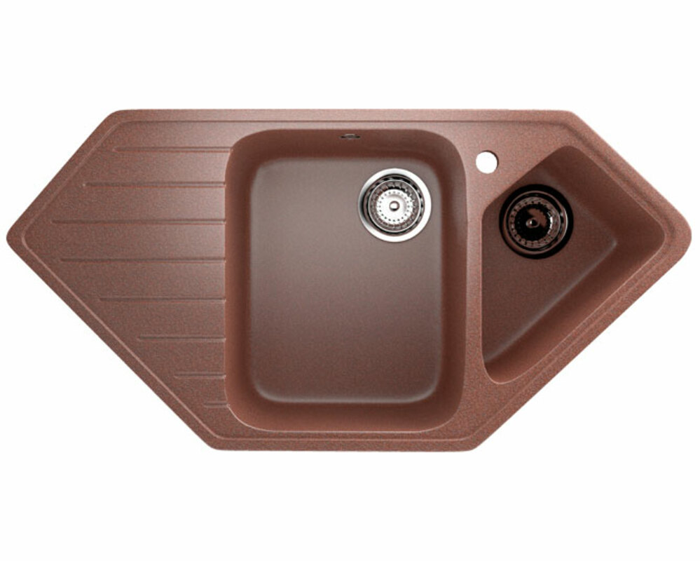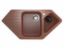Угловая двухсекционная мойка с отверстием под смеситель
