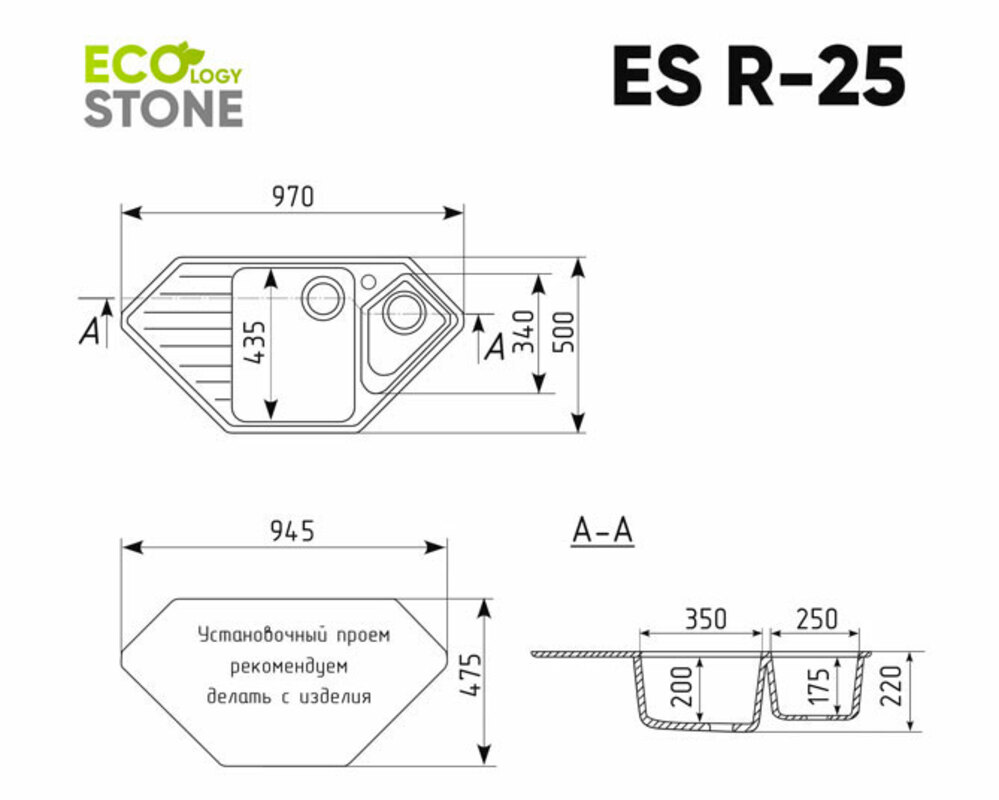 Установочный проем: 945 х 475 мм