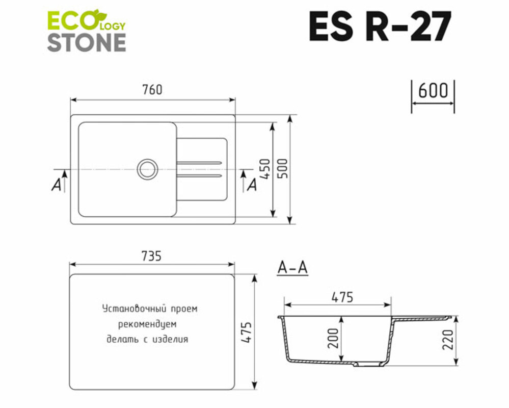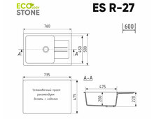 Кухонная мойка Ecology Stone R-27-345 шоколад 760x500мм